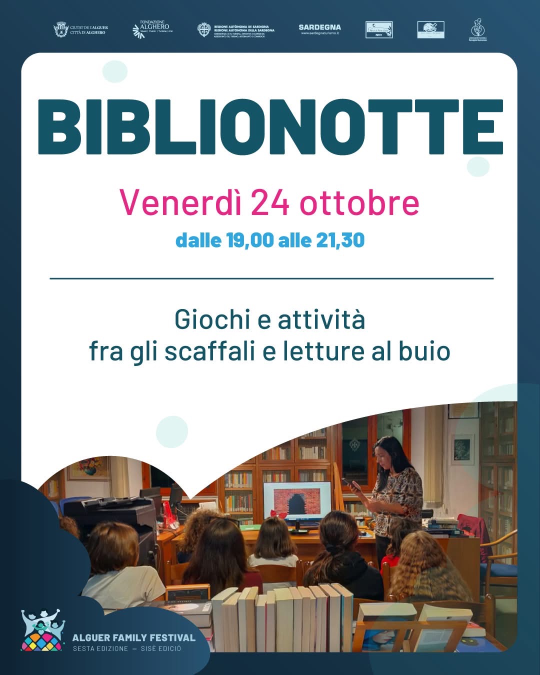 BiblioNotte fa parte delle iniziative del #AlgheroFamilyFestival2025, promosse dal Comune di Alghero in collaborazione con Alghero Turismo e il Parco Naturale Regionale di Porto Conte.