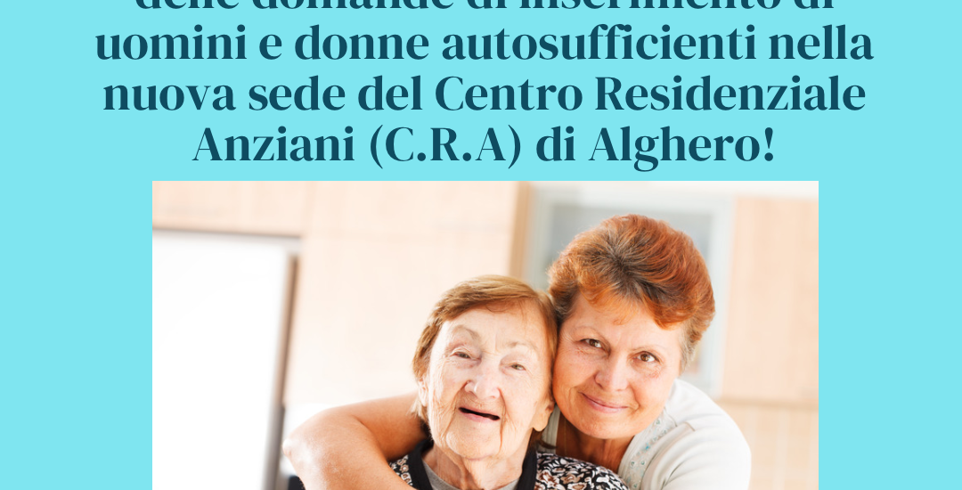 Aperti i termini di presentazione delle domande di inserimento di uomini e donne autosufficienti nella nuova sede del Centro Residenziale Anziani (C.R.A) di Alghero