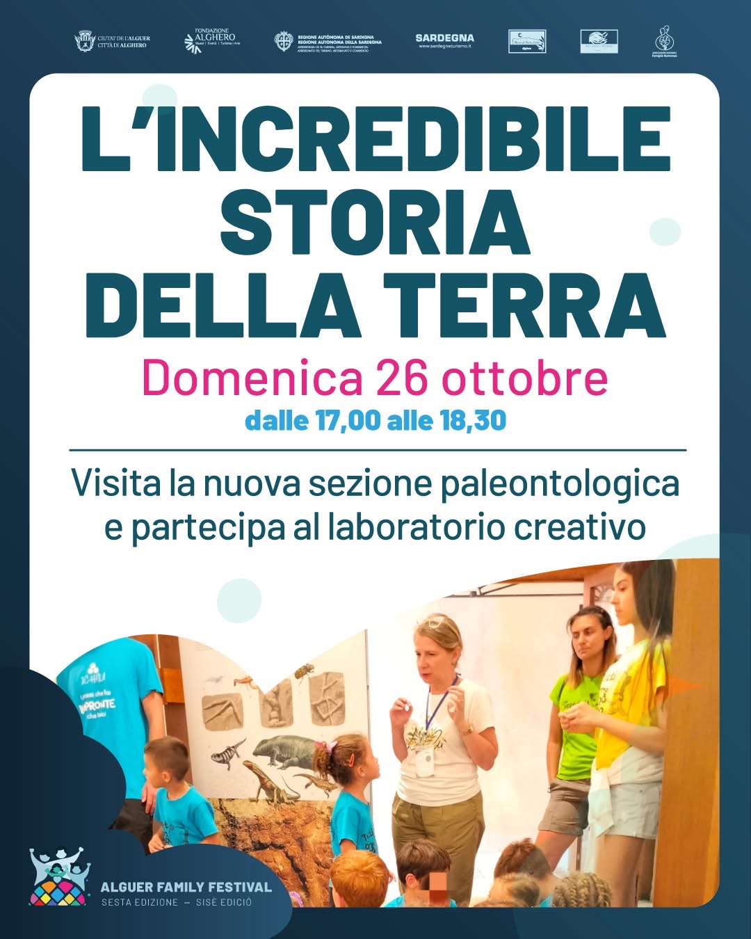 Dalle 17:00 alle 18:30, i partecipanti potranno esplorare la nuova sezione paleontologica del museo, scoprendo le trasformazioni che hanno modellato la Terra nel corso di milioni di anni. Attraverso attività pratiche e coinvolgenti, i bambini costruiranno la linea del tempo del pianeta e incontreranno un protagonista speciale: l’Alierasauro, il rettile preistorico simbolo delle scoperte paleontologiche del territorio algherese.