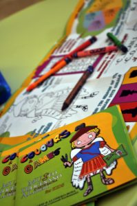 Inoltre, hanno prodotto “For Kids”, un pieghevole di giochi enigmistici intuitivi pensato specificamente per i bambini, e hanno allestito uno spazio comodo e colorato nel quale i più piccoli possano disegnare ed esprimersi.