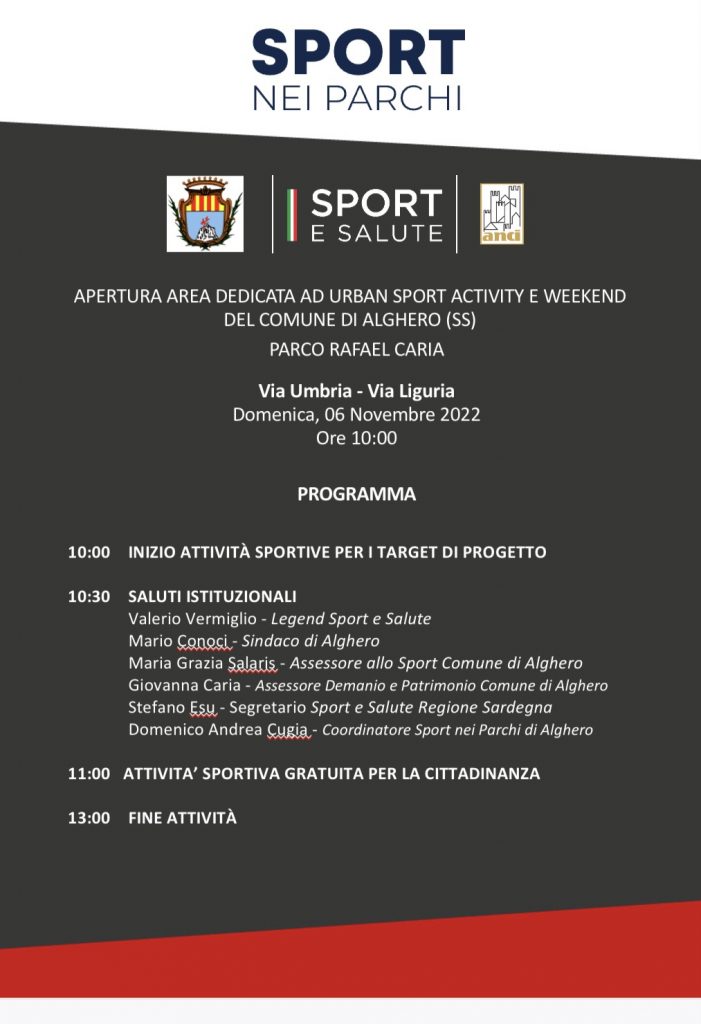 🗓Domenica 6 novembre, a partire dalle ore 10, nel parco Rafael Caria📍, sarà aperta al pubblico una nuova area “Urban Sport Activity e Weekend”.